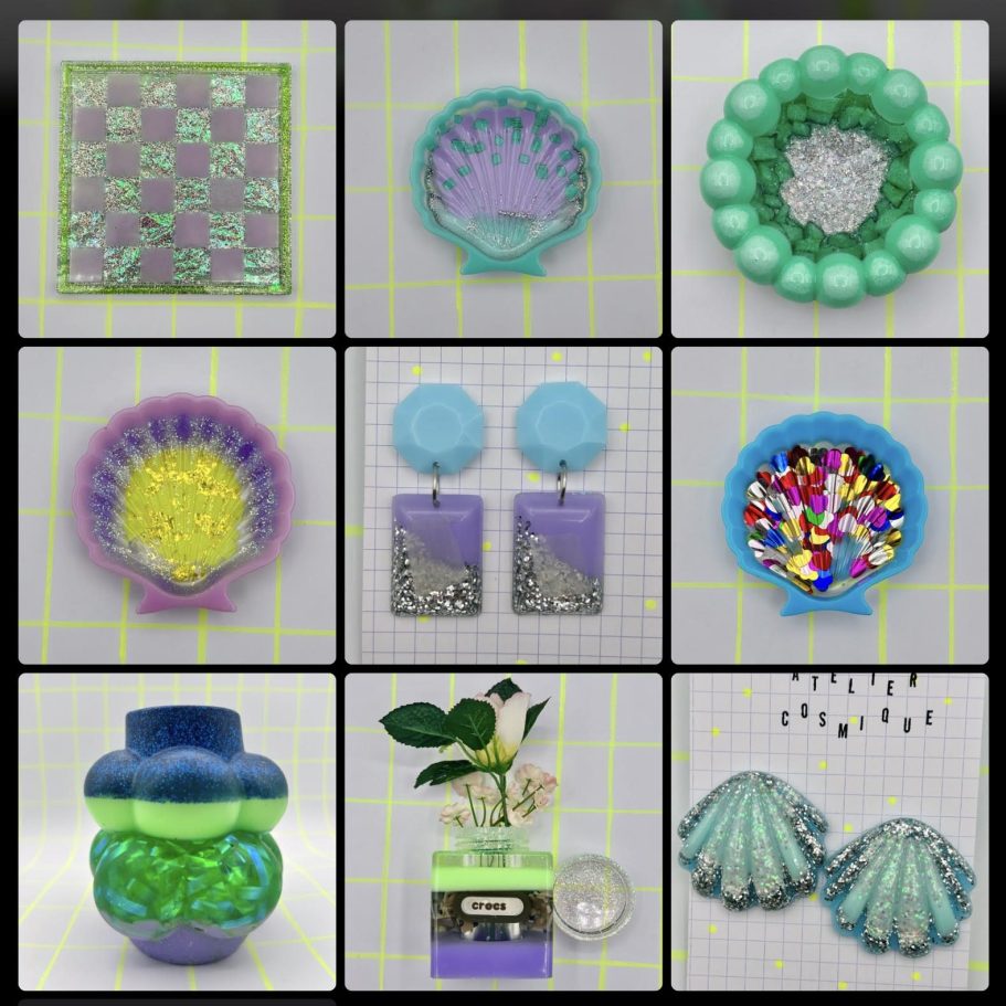 Tu trouveras de quoi te pimper toi-même ou de quoi décorer ton intérieur (ou ta voiture, ton vélo, ton bureau...) à base de déchets de plage ou matériaux de seconde main résinés pour leur offrir une nouvelle vie plus glorieuse que de finir dans une poubelle (dans le meilleur des cas)